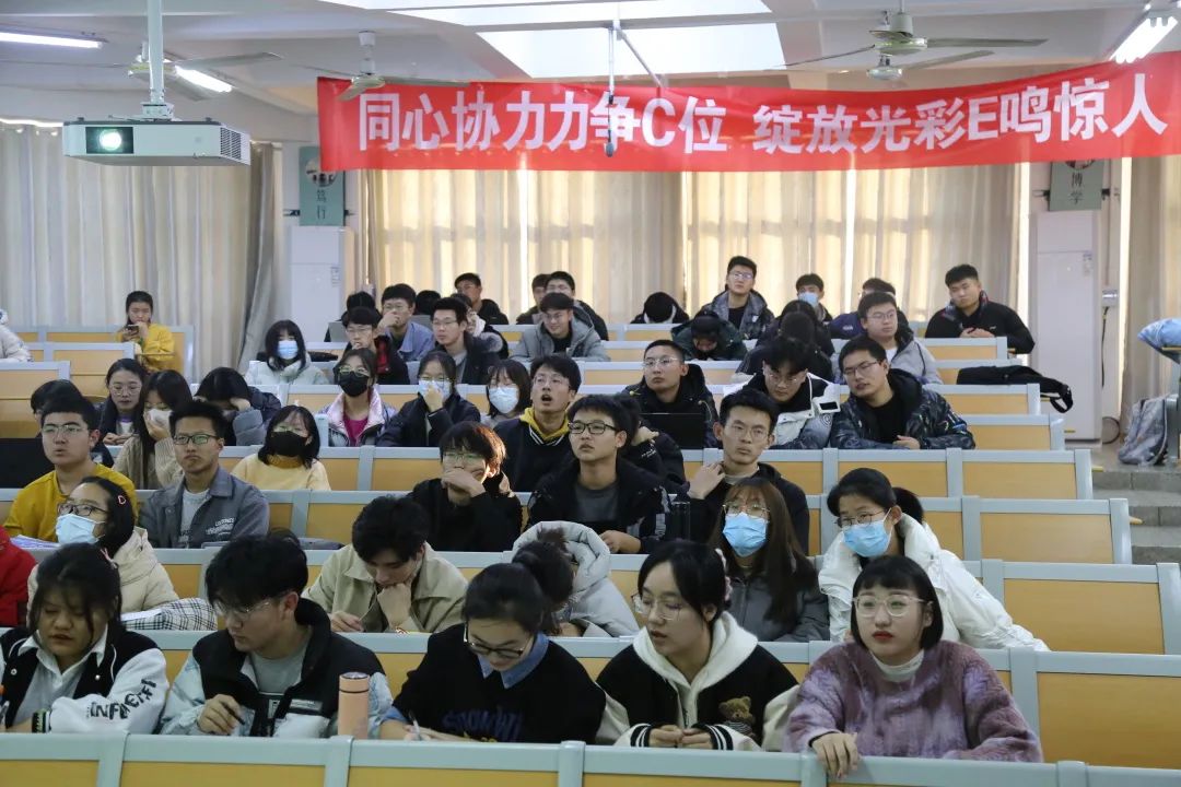 同心协力力争C位,绽放光彩E鸣惊人。为增强大学生学习C语言的兴趣,提高运用C语言分析问题、解决问题的能力,丰富校园文化生活和课余生活。12月4日,聊城大学E通科技社于西校区十一号楼a504和a507举办第五届大学生趣味C语言大赛。本次比赛由E通科技社骨干成员担任评委,来自全校200多名选手为大家带来了一场头脑风暴。