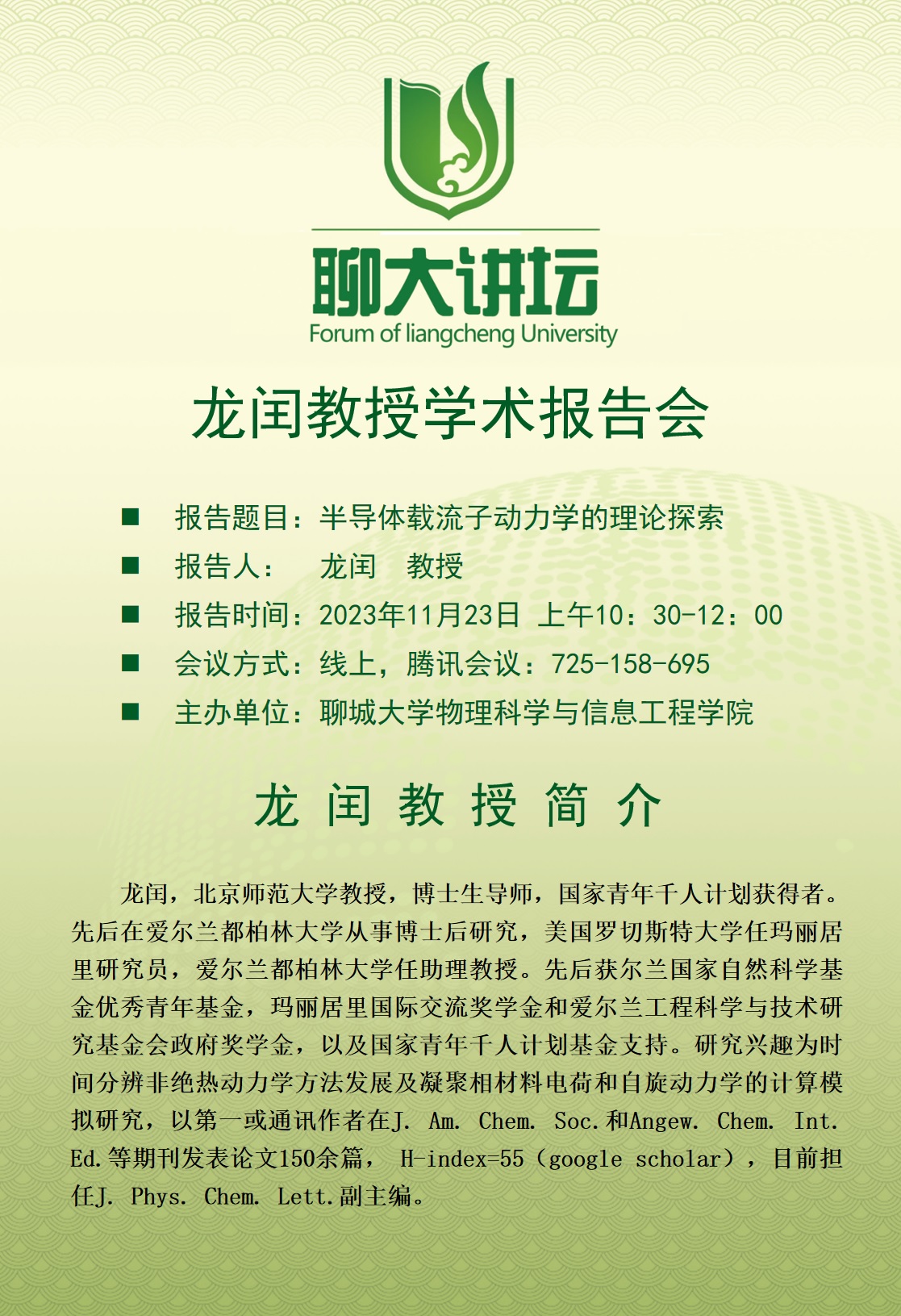 » 龙闰教授学术报告会