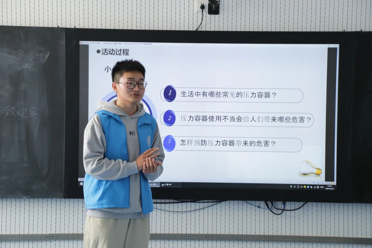 授课过程中,志愿者们结合生活中的物理现象,细致耐心地向小朋友们讲解了有关“压力”的问题,并通过简单有趣的实验向小朋友们展示了压力容器使用不当会产生的危害,同时志愿者们也教导了他们如何预防压力容器使用不当产生的危害。本次课程由提问的形式引入,在面对志愿者们抛出的问题时,小朋友们认真思考,积极举手,大胆地表达自己的想法,他们对科学知识的热情和渴望使课堂氛围变得十分活跃。课堂中,志愿者们将所学专业知识与实际经验结合,解答了小朋友们提出的问题,并将物理知识融入到生活小事中,进一步激发了小朋友们探索科学的兴趣。到了实验环节,小朋友们在志愿者的帮助下,将电子元件和实际电路进行连接,并通过观察、思考以及总结等步骤加深了对科学知识的认识与理解。