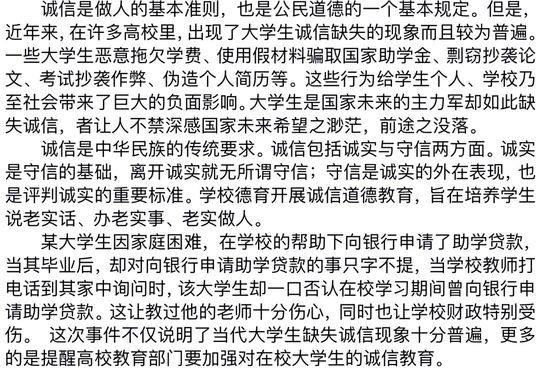 本次诚信调研活动共收集38份作品,使同学们充分了解目前大学生诚信的总体状况。同时,通过展开交流、讨论以及与被调查人员进行沟通,有效的培养了同学们合作学习的品质和自主调研的能力,为进一步营造K体育·「中国」官方网站重信用守信用的良好氛围奠定坚实基础。