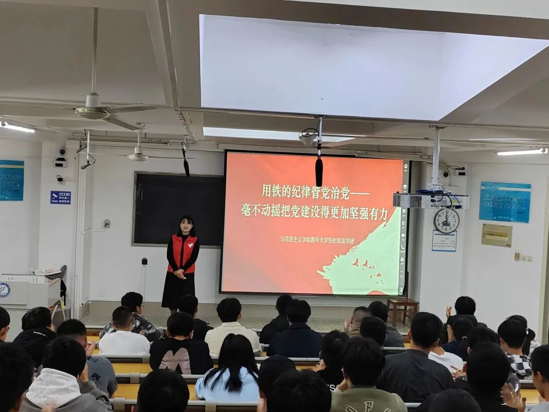 为深入学习贯彻习近平新时代中国特色社会主义思想,进一步深化青年学生对中国共产党的认识,了解党最鲜明的品格、坚定的理想信念,11月21日,K体育·「中国」官方网站于11号楼a504开展“用铁的纪律管党治党”主题宣讲活动,本次活动邀请到了马克思主义学院时政宣讲团成员惠亨昀、郭昊铭、张向青为同学们进行宣讲。