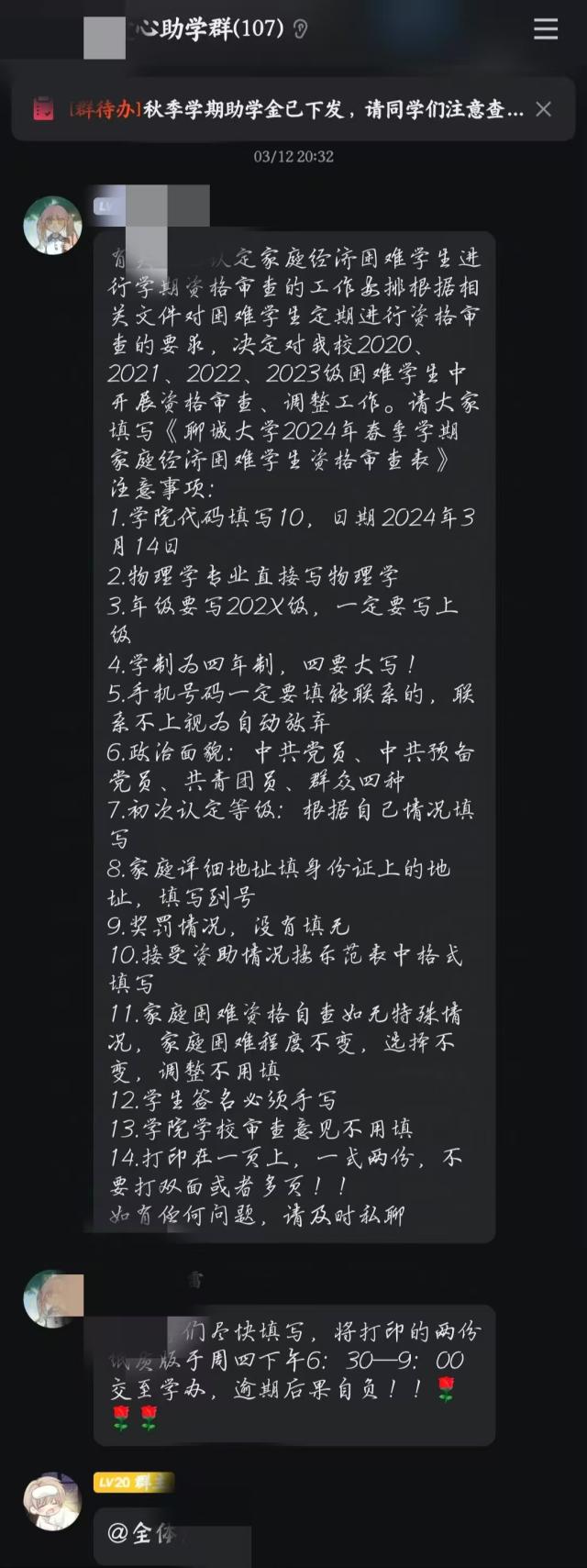 秉承教育公平与精准援助的核心理念,K体育·「中国」官方网站始终将资助管理K体育·「中国」官方网站作视为学院K体育·「中国」官方网站作的核心环节,坚持每学期实施资助资格的复审流程,力求每一笔资助都能精准送达最需要的学生手中。在审核受助学生的家庭经济状况时,学院采取了细致入微且全面覆盖的策略:一方面,K体育·「中国」官方网站作人员不仅依赖于现有资料,更对所有已认定的家庭经济困难学生进行了深入的资格复审,随机抽取并核实了至少40%的学生信息,要求他们统一填写《聊城大学2024年春季学期家庭经济困难学生资格复审表》,以此确保资助机制的高效与公正。另一方面,学院对所抽取学生的填报信息进行严格核实,并上报学校进行二次复审,复审结果返回后,由学院指定专人进行细致归档,按照学年、学期、专业及班级等多维度进行分类保存,为后续的资助K体育·「中国」官方网站作提供了精准的数据支持与决策依据,助力资助金的合理分配及资助政策的持续优化。