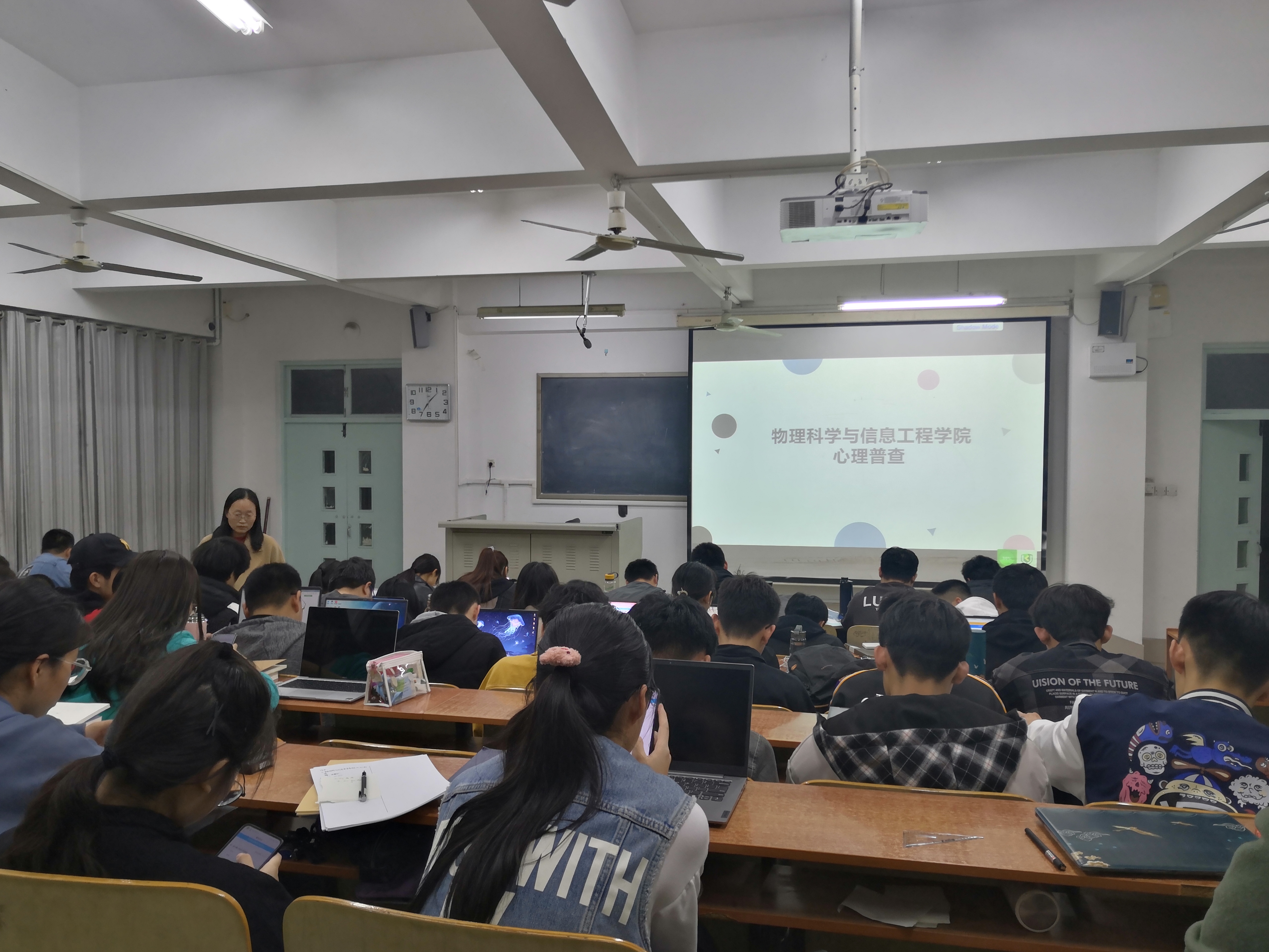 本次心理普查以班级为单位,采用线上测试方式进行,针对大学生在心理层面出现的自卑、厌学、意义感和价值感缺失、极端心理等问题进筛查分析。问卷前,姜老师对测试流程进行了讲解,交代了测试的注意事项,并从自我认知、职业规划、人际交往、情绪调节与压力管理等方面进行讲解,引导学生转变心理状态,树立正确的心理观念,保持自身心理健康不断成长。随后,各班级组织学生进行测试。