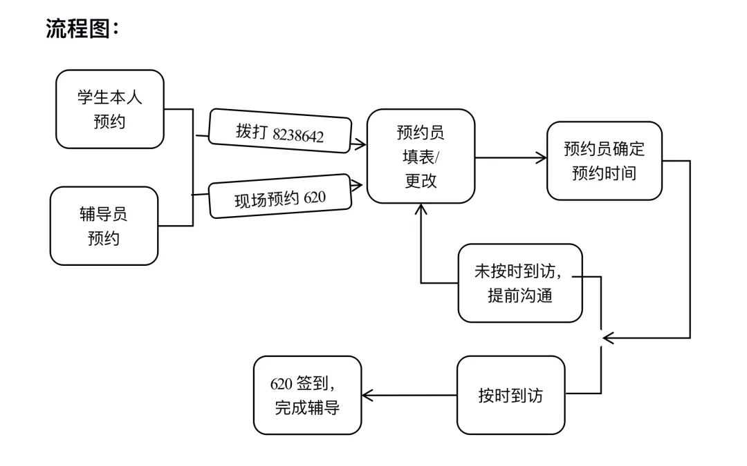 (1) 预约时说明是预约朋辈心理辅导(试运行阶段暂共用心理咨询预约电话及地点)。
