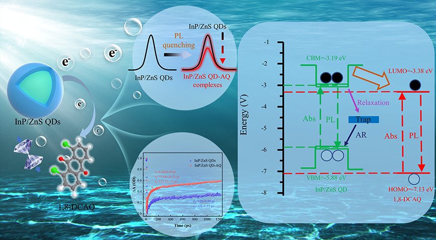 电子转移速率的调控对提高电子转移系统的光电转换效率至关重要,近年来逐渐成为研究热点。刘才龙教授团队利用高压原位瞬态吸收光谱探测技术,提出了压力调控甲苯中InP/ZnS量子点-蒽醌(InP/ZnS QD-AQ)复合体系电子转移的影响机制。研究表明,从常压至0.9GPa,压致供-受体间距的减小可以有效促进InP/ZnS QD-AQ复合体系的电子转移过程;从0.9GPa至2.1GPa,InP/ZnS QD-AQ复合体系的电子转移过程被抑制是压致InP/ZnS量子点的量子限域效应和蒽醌分子的压致AIE效应共同作用的结果。此项K体育·「中国」官方网站作为基于供-受体复合体系光电器件的发展提供理论依据,并将促进其在光电转换领域中的应用。相关成果以“Electron transfer tuned by pressure-dependent aggregation-induced emission in InP/ZnS quantum dot-anthraquinone complexes(通过压力依赖的聚集诱导发光调控InP/ZnS量子点-蒽醌复合体中的电子转移)”为题发表在《Applied Physics Letters》(《应用物理快报》)国际期刊上。2021级硕士生秦霞霞和张海娃博士为论文共同第一作者,楚亚博士、王庆林教授、郑州大学郭海忠教授和刘才龙教授为共同通讯作者,聊城大学为第一署名单位。