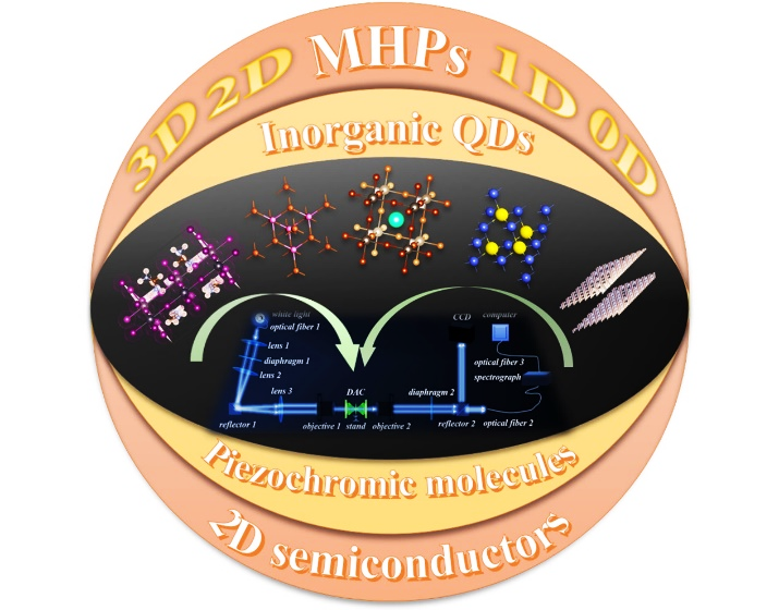 进展三:近年来,压力诱导带隙调节作为一种新颖而有效的手段,揭示了固有能带性质和深层结构-性能的关系。基于几种典型的半导体材料,包括金属卤化物钙钛矿、无机量子点、压致变色分子化合物和二维半导体材料,刘才龙教授团队概述了利用显微稳态紫外-可见吸收光谱技术的压力诱导带隙响应的系列研究,总结了高压条件下结构对带隙演变的影响以及带隙K体育·「中国」官方网站程的一般原理,为环境条件下的材料设计提供指导。相关研究成果以“A review: comprehensive investigation on bandgap engineering under high pressure utilizing microscopic UV-Vis absorption spectroscopy(评论:关于利用微区紫外-可见吸收光谱技术在高压下进行能隙K体育·「中国」官方网站程研究的综合调查)”为题发表在《APL Materials》(《APL材料》)上。2021级硕士生陈林为论文第一作者,张海娃博士、李茜教授和刘才龙教授为共同通讯作者,聊城大学为唯一署名单位。