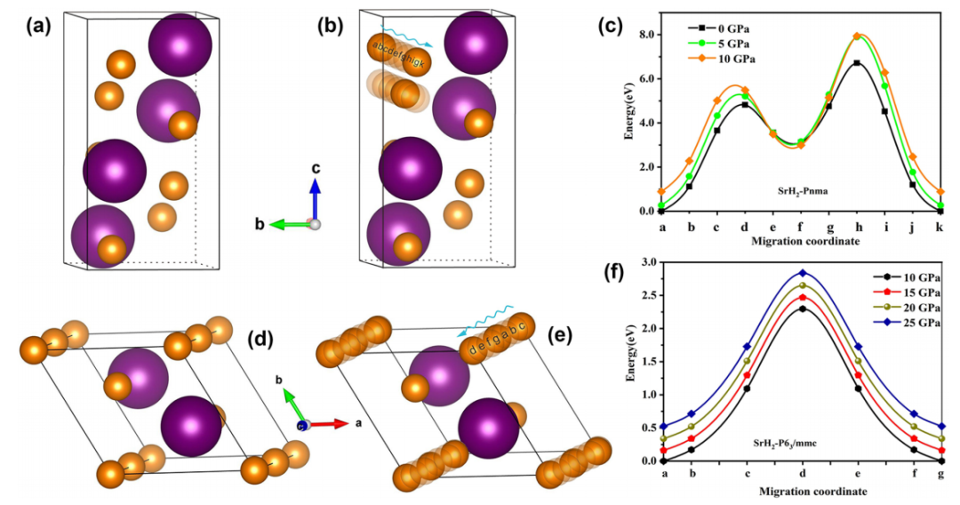 碱土金属氢化物(AeH2, Ae="Ca," Sr, Ba)因其优良的离子导电性和热稳定性而被认为是很有前途的固体储氢材料。然而,AeH2的高分解温度、缓慢的吸附动力学行为和结构的不灵活性阻碍了这些氢化物在储能领域的应用,因为很难通过控制晶格结构来为H-离子创造良好的输运路径。压力可以有效的调控AeH2材料中H-离子的输运性能,从而更好地理解其构效关系。本K体育·「中国」官方网站作中,刘才龙教授团队与内蒙古民族大学、吉林大学、江苏师范大学合作,通过基于DAC的高压原位交流阻抗谱测量技术,结合第一性原理计算,系统的研究了SrH2在高压下的电输运行为。研究发现,压力诱导的SrH2从Pnma相到P63/mmc相的结构相变伴随着导电行为从纯电子传导到混合离子/电子传导转变的新奇现象。通过等效电路模拟,分别获得了P63/mmc相离子和电子在晶粒和晶界处的传导电阻。相变后,SrH2的总电阻降低了4个数量级,并且出现了低频巨介电行为。团队通过对SrH2中H-离子在传输通道不同位置的势垒能量的计算,阐明了载流子传输类型发生转变的机制。这一研究结果有助于更好地理解碱土金属氢化物高压下的导电机理,并为此类化合物及其他固态储氢材料载流子输运研究及介电性能的优化设计提供了新思路。
